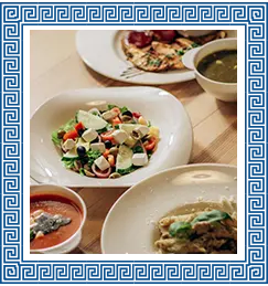 Vår meny är inspirerad av traditionella grekiska recept, med en modern twist. Vi fokuserar på enkelhet, färskhet och äkta smak – från grillade kött- och fiskrätter till färgstarka mezze och hantverkscocktails.